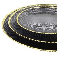 Economy Plastic Charger Plates 13″ Round Clear with Black Beaded Rim – Stylish Dinner Party Serving Plates