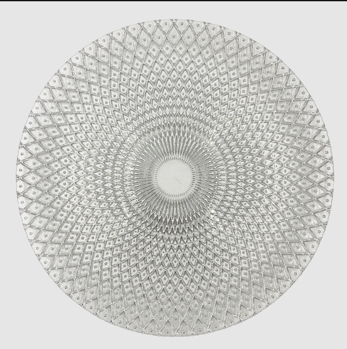 / Mandala Glass Charger Plate in Silver 13inches